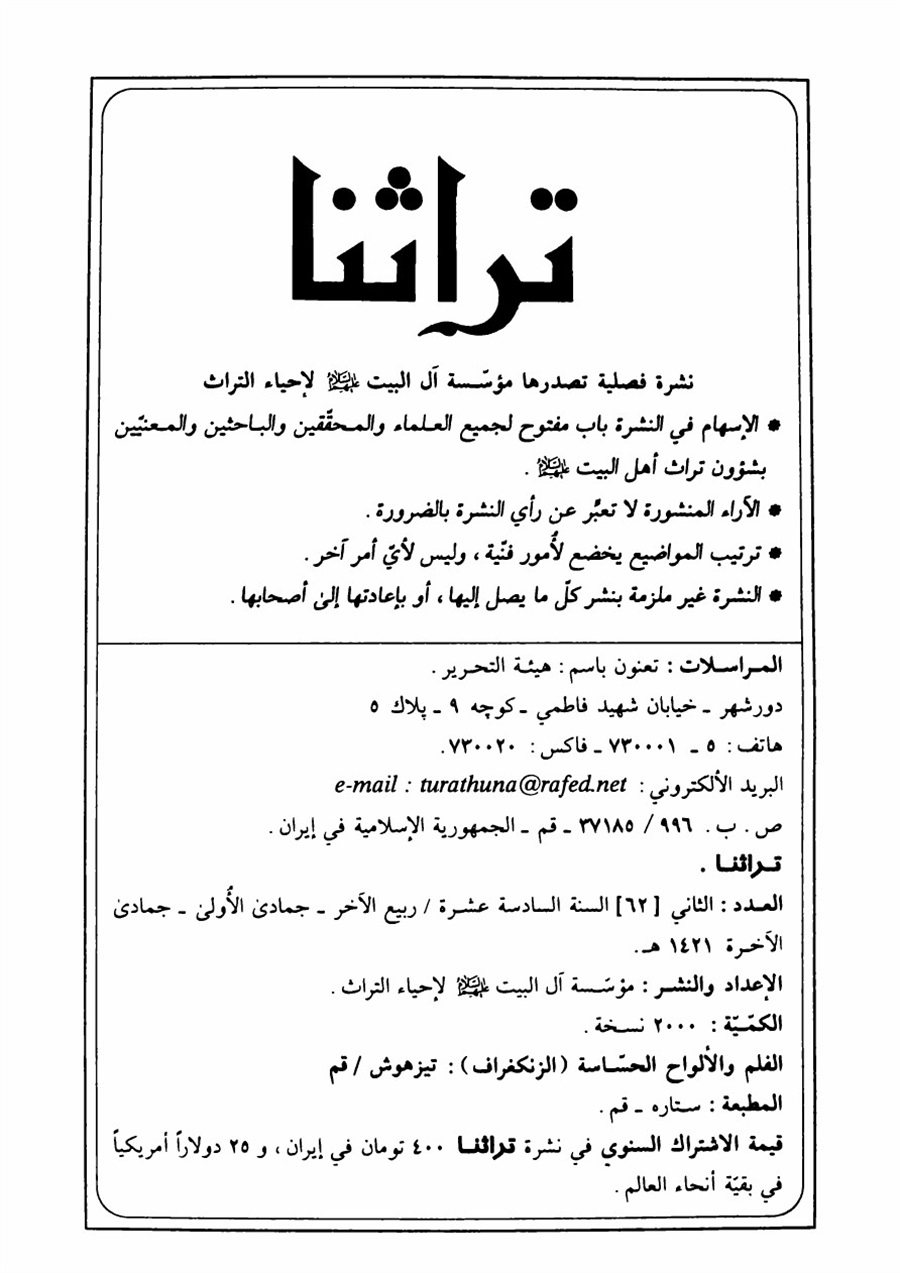 المؤلف: مؤسسة آل البیت علیهم السلام لإحیاء التراث - قم